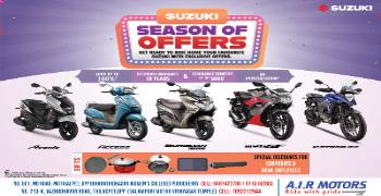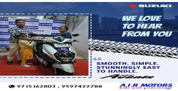 Established in 2016, A.I.R. SUZUKI, Muthialpet is one of the most well-known and trusted Suzuki Bike Showroom in Pondicherry. A.I.R. SUZUKI is an authorised Suzuki Motorcycle Dealer with a state-of-the-art showroom where you can check out the new Avenis,take it out for a test ride, and book your dream ride. On our website, you can explore the entire range of two-wheelers by Suzuki Motorcycles. You can also find out the ex-showroom price of different variants, calculate EMI, get a callback, and even book a suitable time slot for a test ride. Check out your favourite Suzuki motorcycles and scooters conveniently, with the easy-to-use filters to simplify your search. A.I.R. SUZUKI offers the entire range of Suzuki Motorcycles, Big Bikes, and Scooters in the Avenis from A.I.R. SUZUKI,check out its features, take it for a ride, get a quote, and book your favourite bike from the entire range of Suzuki motorcycles and scooters in. At A.I.R. SUZUKI, you can also avail two-wheeler finance to buy your favourite ride.